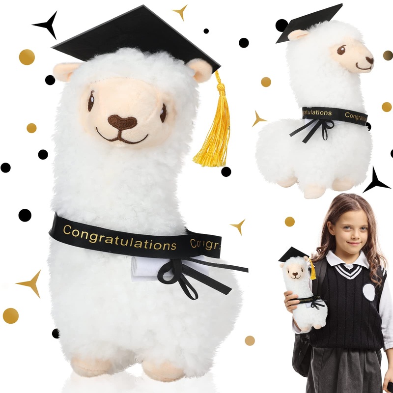 Features: Lightweight and portable: Owing to ideal size of 12.99 inches/ 33 cm, our llama stuffed animal plush is lightweight and easy to carry. Besides, it is also easy to store without occupying much space. Thoughtful graduation gift: Llama plush toy can be stylish gifts for graduates, making them delighted and enjoyable at the graduation party. Specifications: Size: about 12.99 inches/ 33 cm Main color: white Main material: plush Package includes: 1 x white llama plush with graduation cap and certificate Warm notes: Please allow a little error on the size due to manual measurement. The color might have a slight difference due to different displays. Please read the size instruction carefully before purchasing. Suit to people over 12 years old.