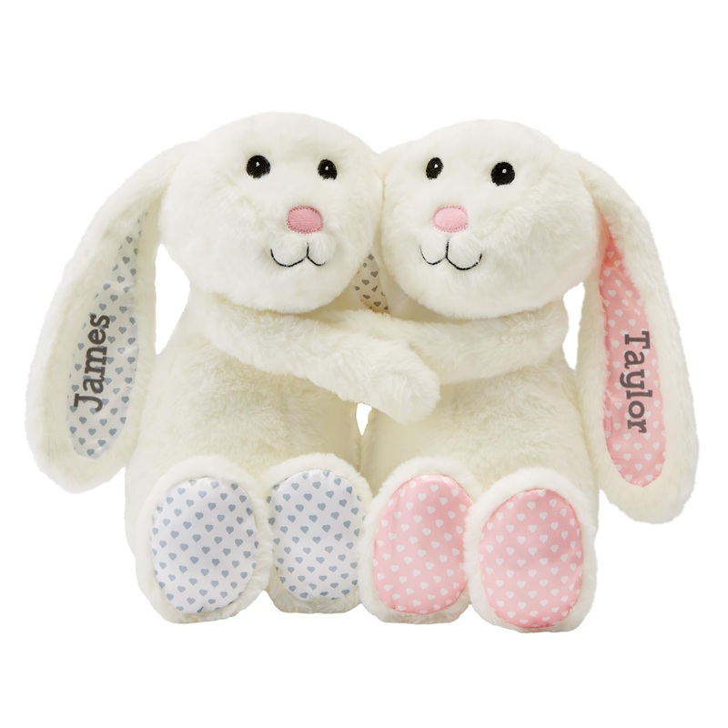 What's better than a bear hug? A double bunny hug! This soft, cuddly duo is for siblings, friends, or even couples. A great addition to Easter baskets.