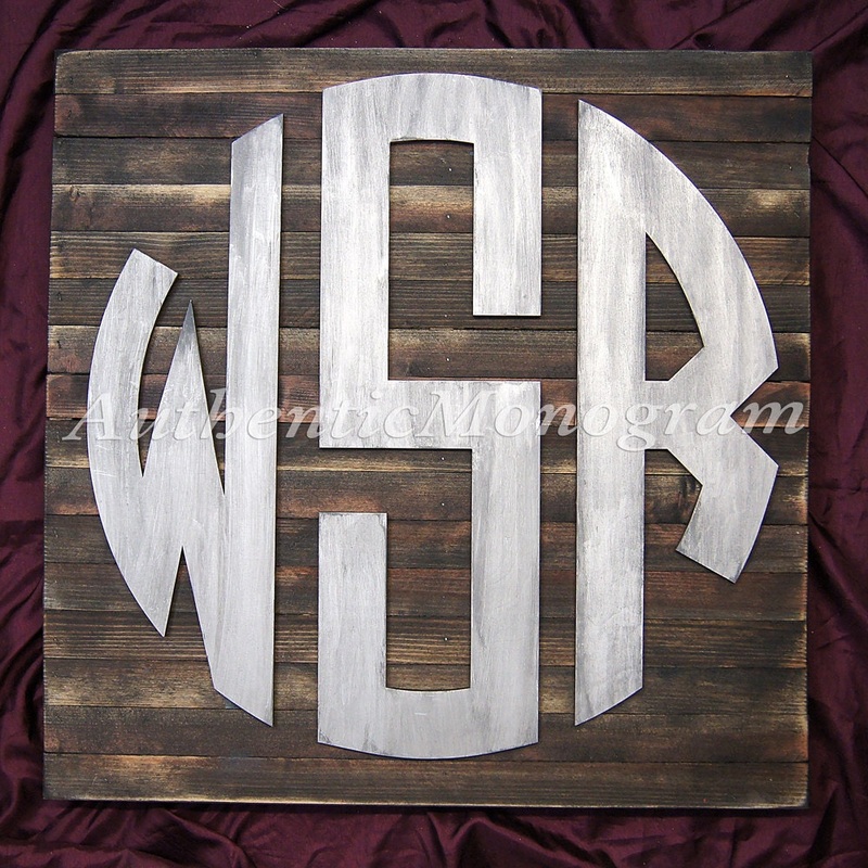 This monogram comes UNPAINTED and custom cut from high quality 1/4″ Baltic Birch plywood, natural high quality birch wood and is very elegant looking. Weathered Board is painted.
