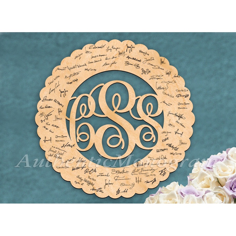 Guest Book Monogram - Scallop Wooden Monogram Unpainted - KK Script Monogram - Home Decor - Wedding Decor - Door Hanger Monogram- Monogram Wall Hanging" ? natural best quality birch wood."Smooth Edges "Laser Cut Edges"No splinters"No hanging material inclu